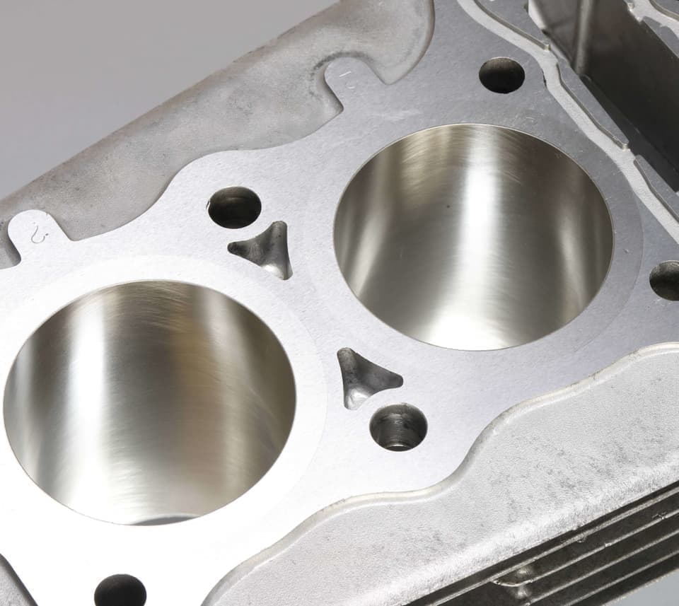 磨耗してしまう鋳鉄スリーブを現代の技術ニッケルシリコンカーバイドメッキを施したアルミスリーブに置き換えることで、減らないと言っていいほどの耐摩耗性を実現。同時に軽量で、放熱性がよく、滑りがよくて焼きつかないという多くの美点で理想のシリンダー を創りあげます。