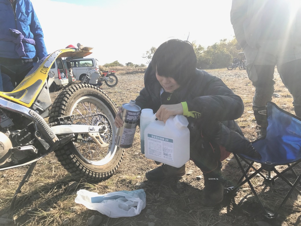 普通のガソリンじゃ焼き付いちゃうっていう、 2 ストでしか発生しないこの作業にもワクワクが止まらない。