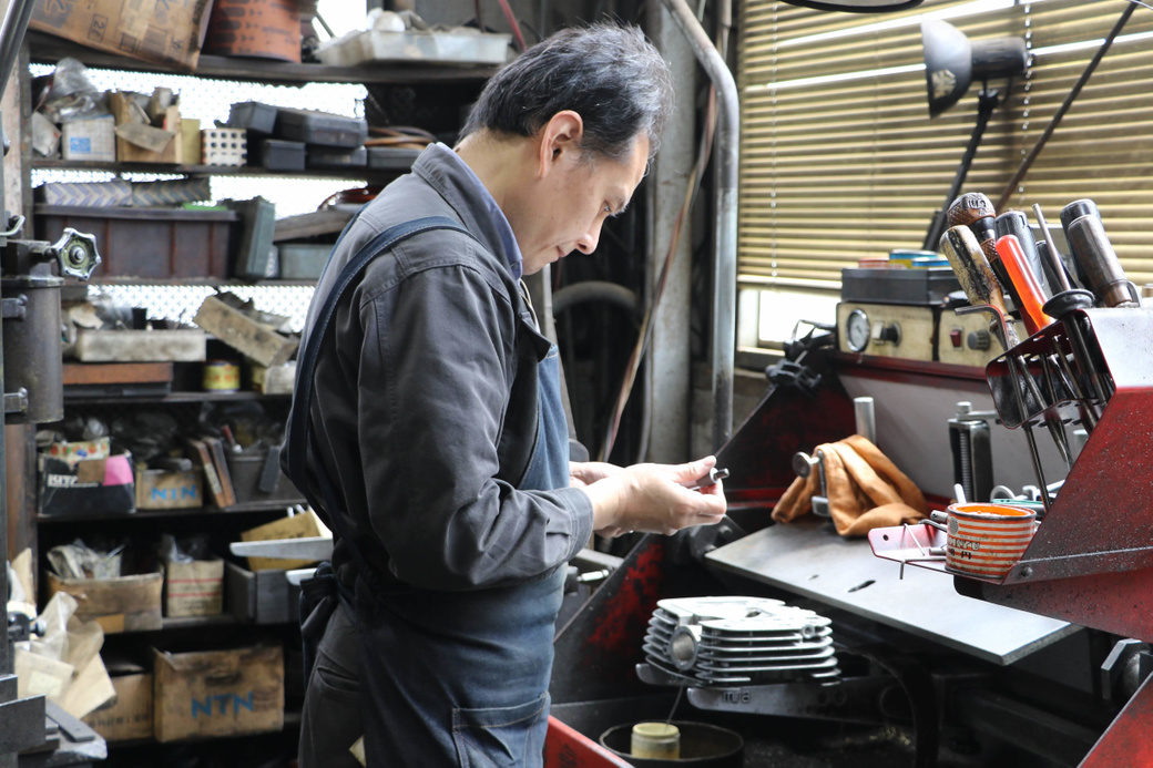 そんな市川さんの現在の業務は、前職での経験を活かした工程管理と、シリンダーヘッドのオーバーホール。古いバイクに乗り続け、エンジンの音がうるさくなってきたなど、ガタが出てきてしまった状態を、バルブ回りなどをリフレッシュすることで改善する工程を担当しています。