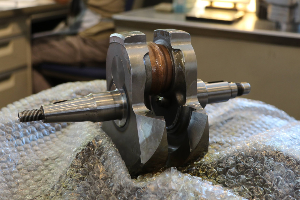 ほかにも、井上ボーリング独自の勤務形態である自由研究時間を使い、大好きなヤマハ SR のエンジンレスポンスを向上させるために、クランクを 2 ㎏軽量化。理想のバランスになるように、円形のクランクを少しずつ削っていき、美しい斧型を形成した『軽量斧型クランク』として、商品化を実現させました。