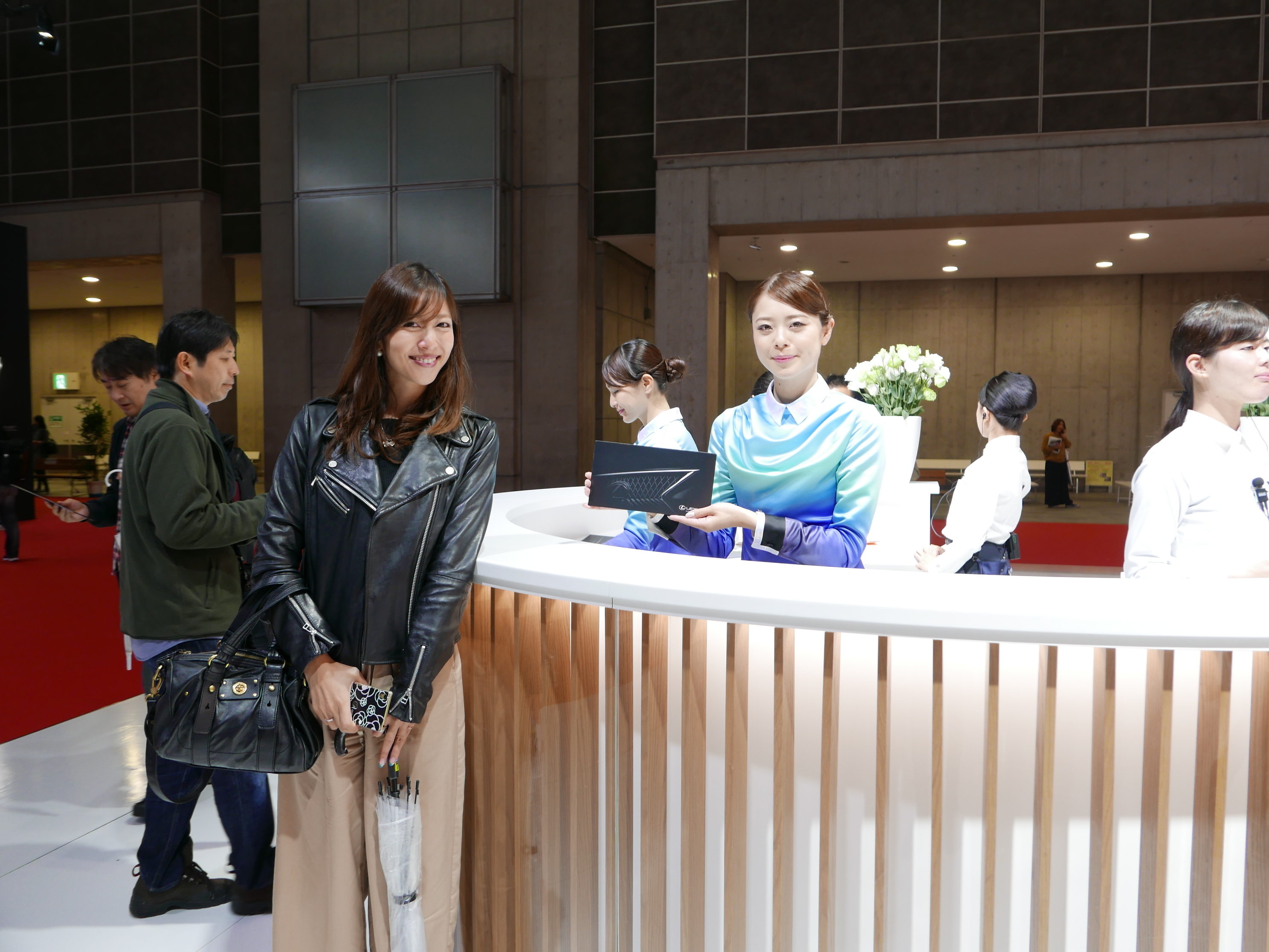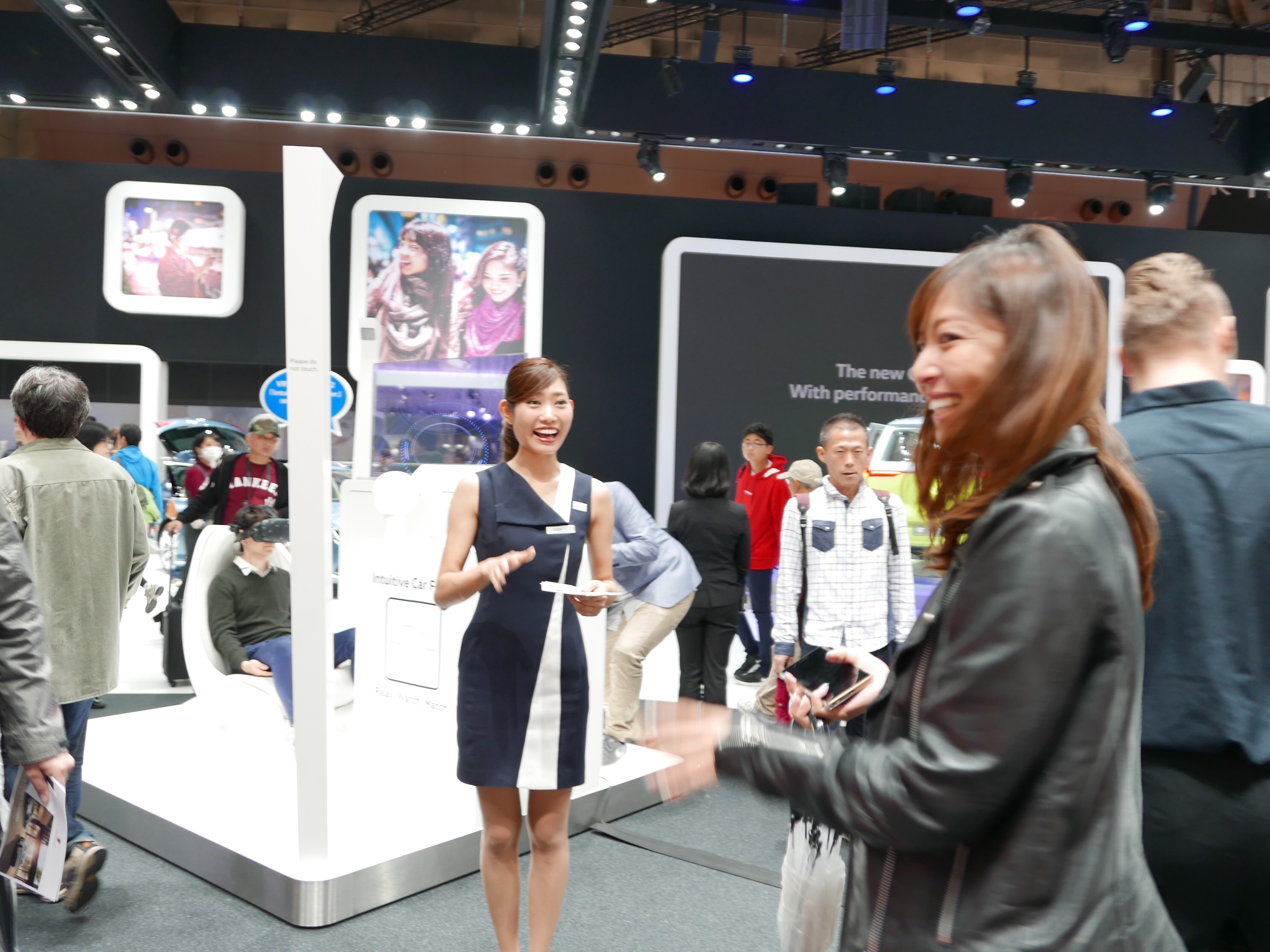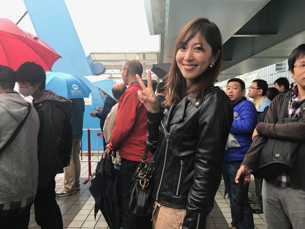 実は前日筑波サーキットでiB Ladyをやってくれた朝倉あやさんに、雨で中止になった当日のイベントの代わりに思いつきで「いっそ、モーターショウにでもいきますか?」ってお誘いしたら、「わ〜、行きたいです〜〜!」と即答してくれたんです!それでモーターショウ行きが急遽決定したという事情でした。あやさんはお友達がたくさんショウに出演しているので、会いにいければ、と思っていたところだったようなんです。ラッキ!