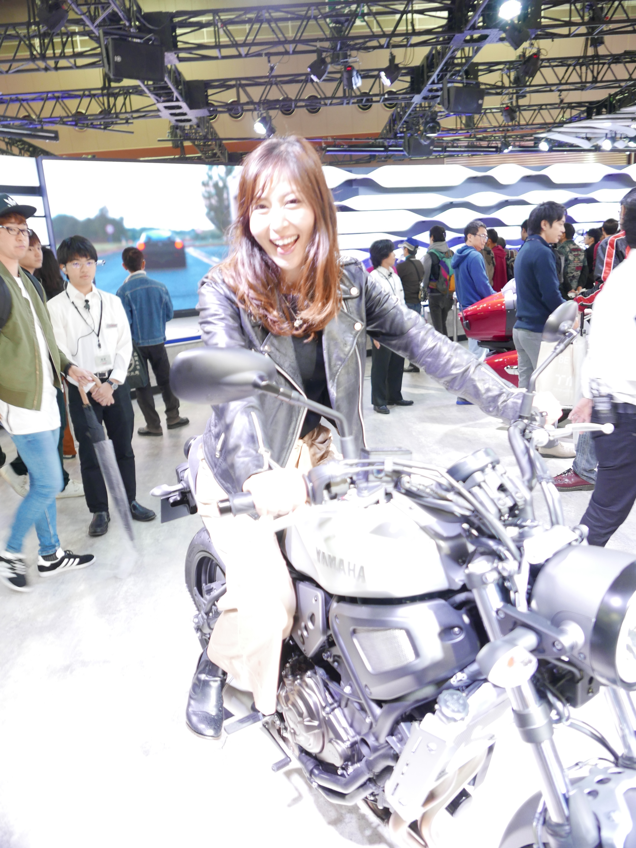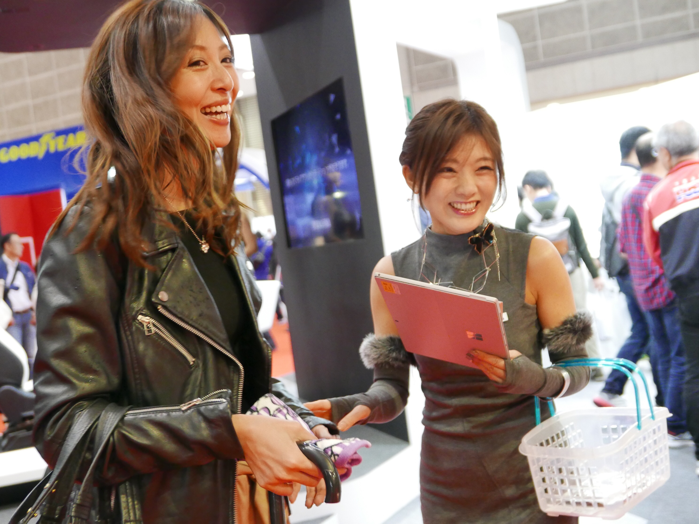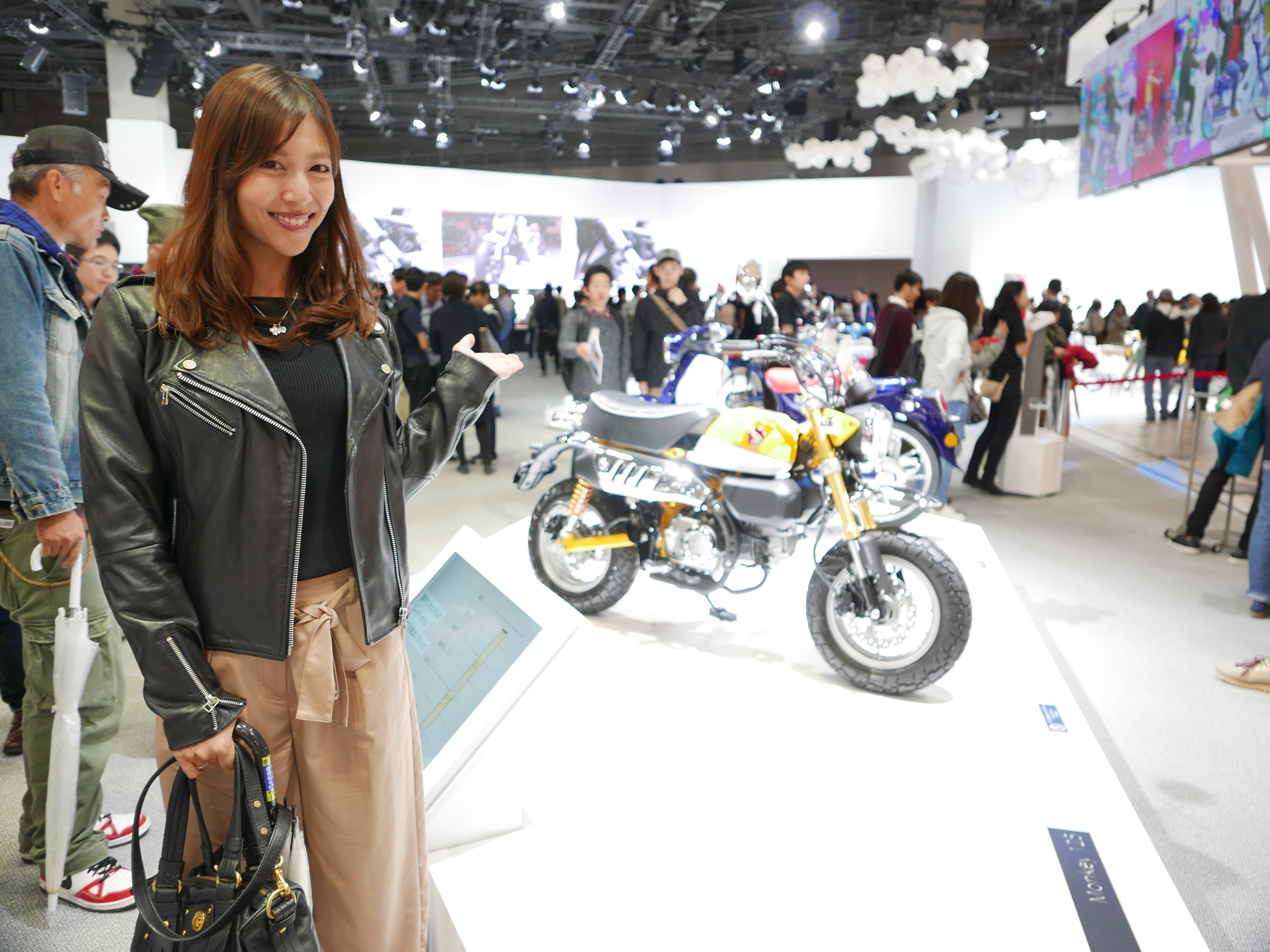 実は前日筑波サーキットでiB Ladyをやってくれた朝倉あやさんに、雨で中止になった当日のイベントの代わりに思いつきで「いっそ、モーターショウにでもいきますか?」ってお誘いしたら、「わ〜、行きたいです〜〜!」と即答してくれたんです!それでモーターショウ行きが急遽決定したという事情でした。あやさんはお友達がたくさんショウに出演しているので、会いにいければ、と思っていたところだったようなんです。ラッキ!