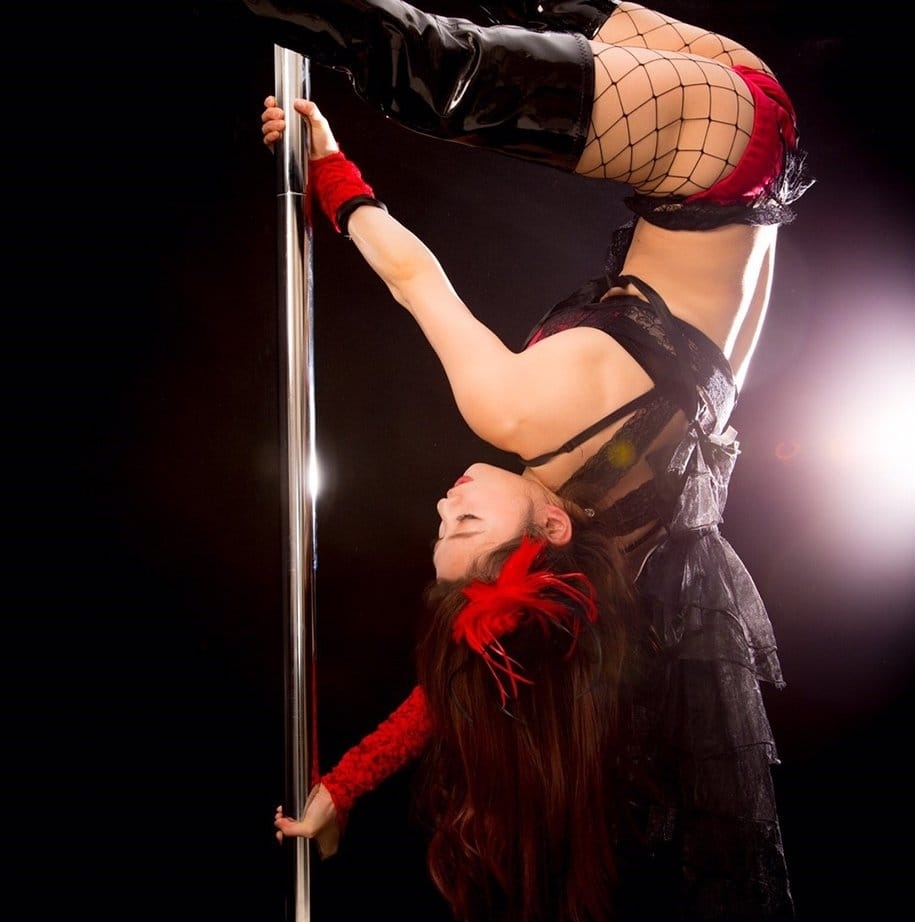 見てください。ポールダンスをする多井子さん。(#^^#)