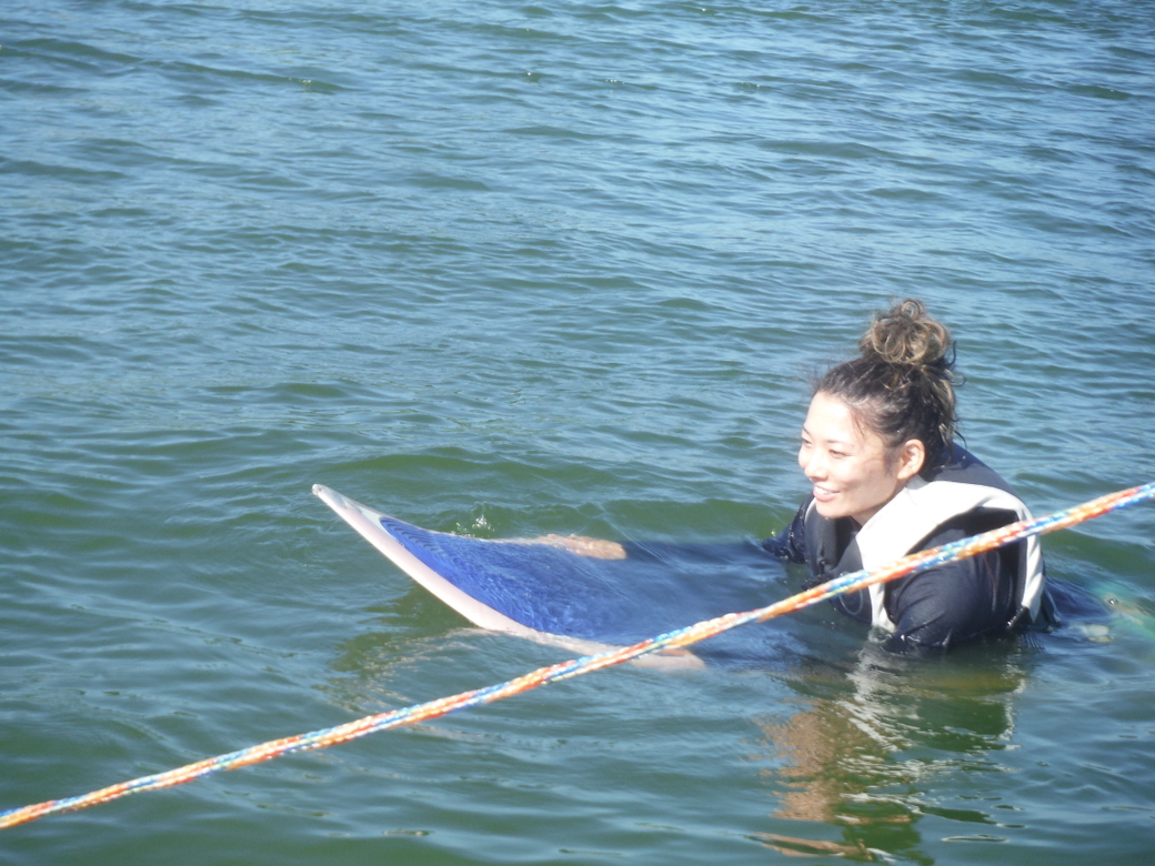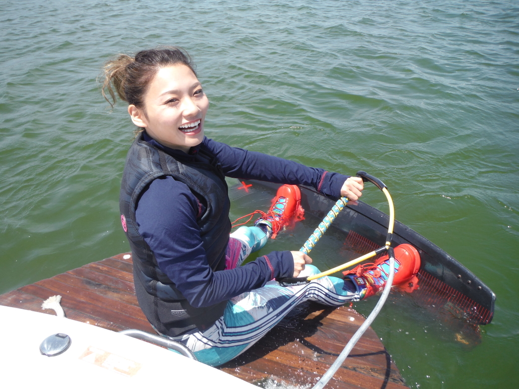 ボートのエンジンを使って遊ぶウェイクボードは、エンジン部品を扱う内燃機屋iBのキャンペーンガール"iB Lady"の「必修科目」ですからね。(^o^)