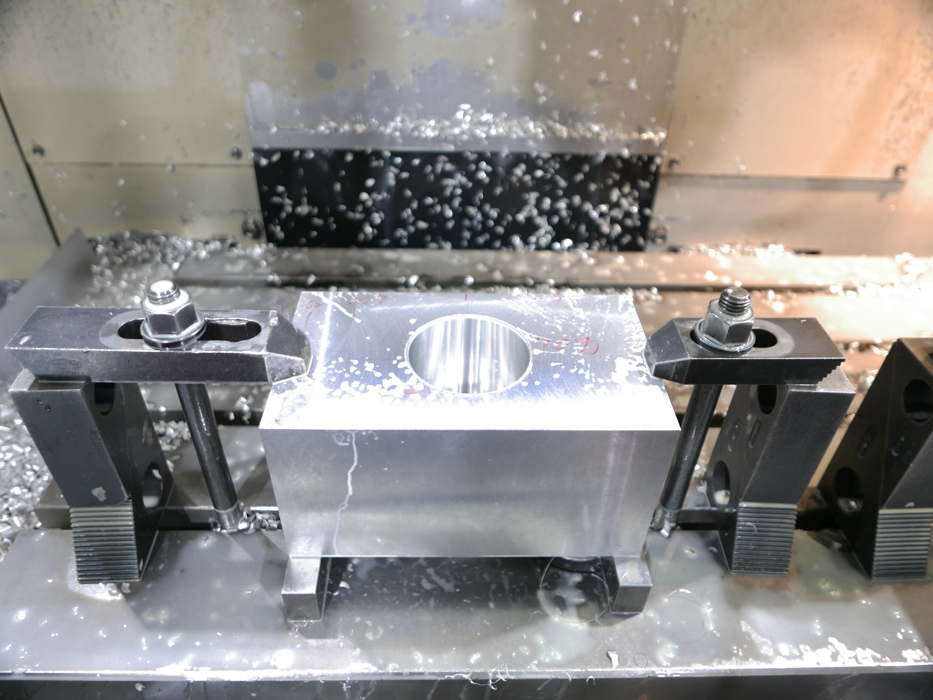 通常業務で忙しく稼働する横型マシニングセンターが空く隙を狙って作業を進めたため、試行錯誤を繰り返しながら3個のシリンダーを削り出すには2年の月日がかかっています。