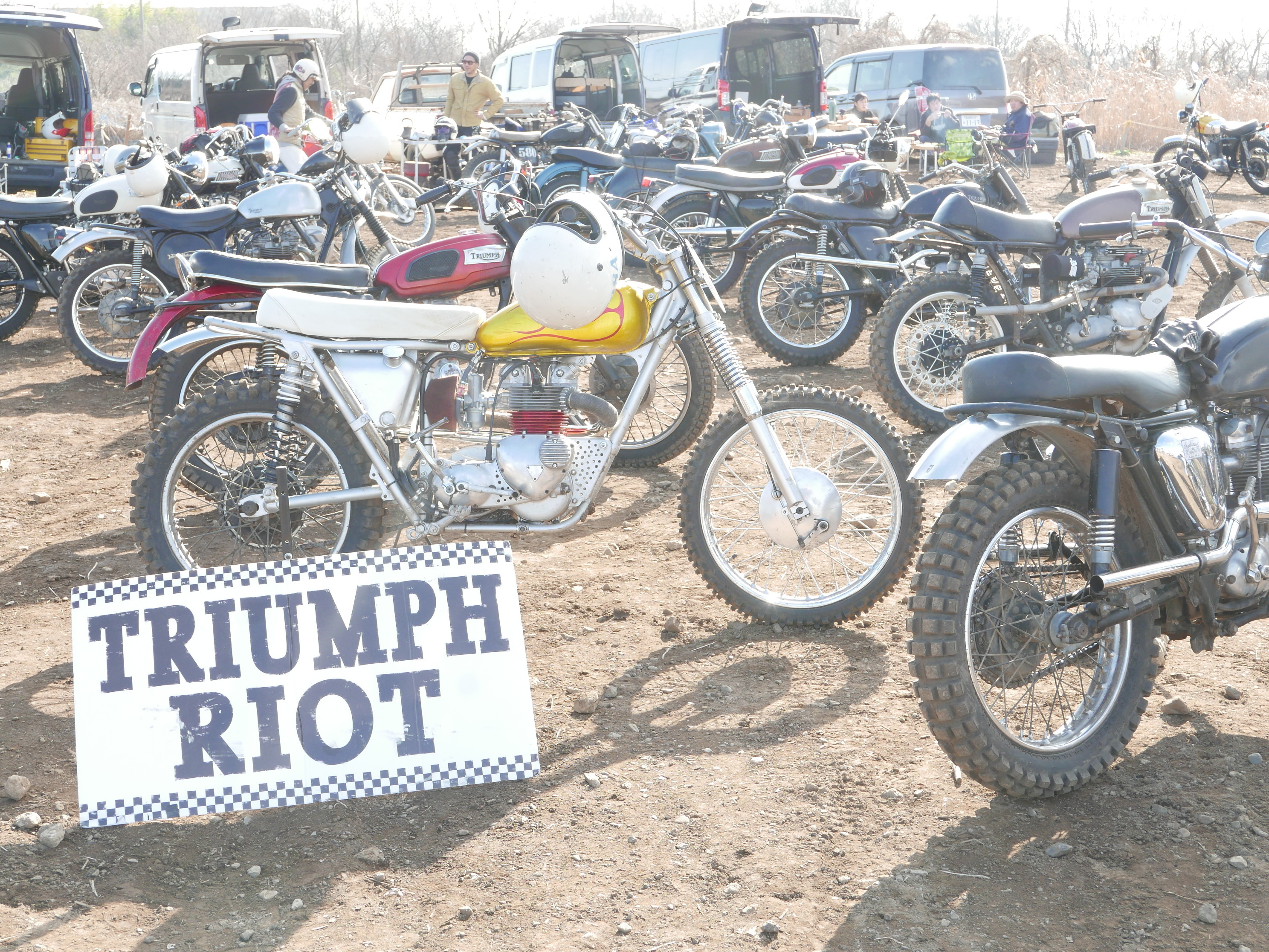 会場にはコースを走るというわけでもなく、多くのトライアンフ乗りのみなさんが集結して暴動(RIOT)を起こしてました!(^o^)