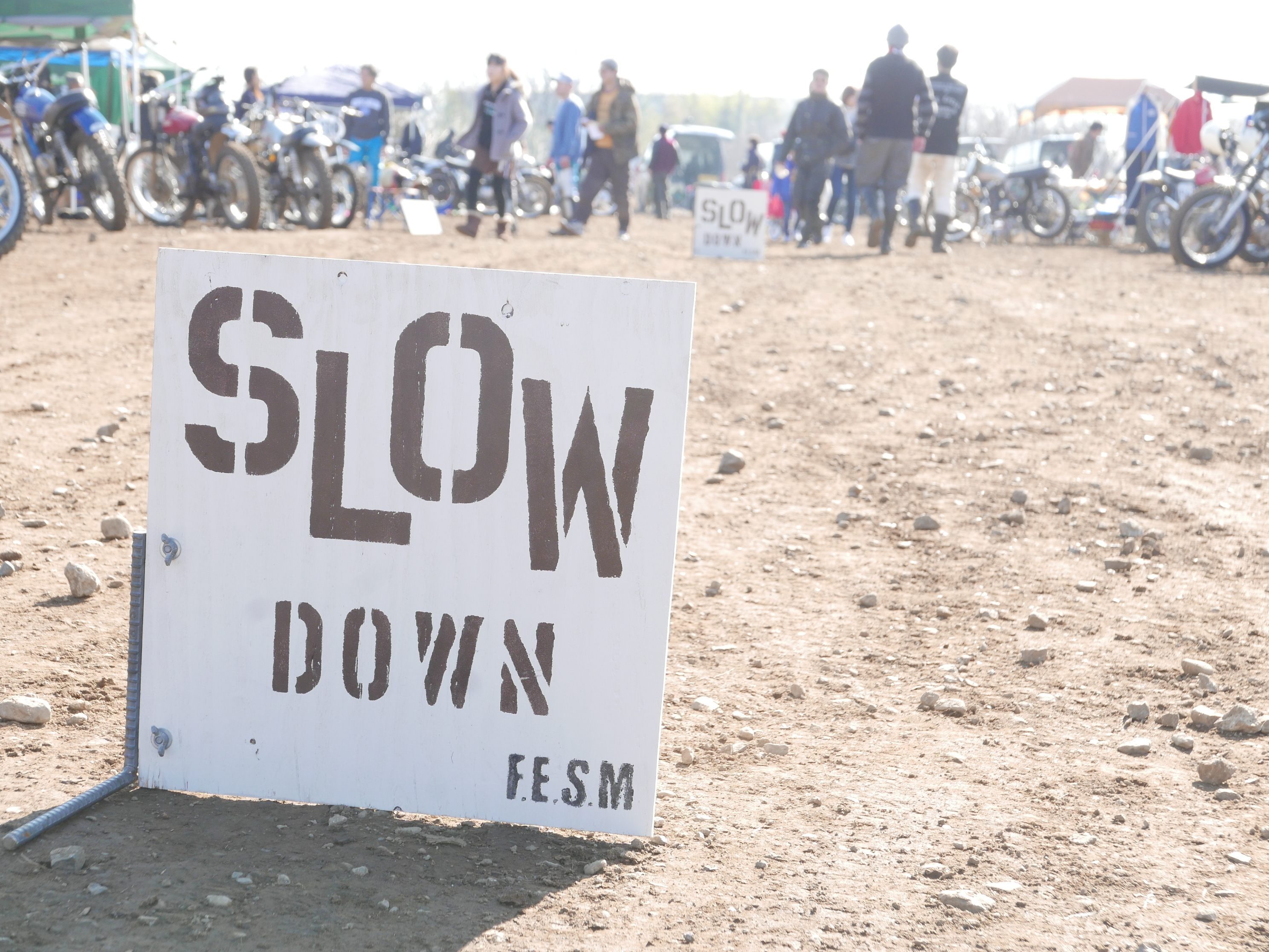 会場のそこここに「SLOW DOWN」の掲示が。イベントが発するメッセージはほぼこれが全てです。(^o^)