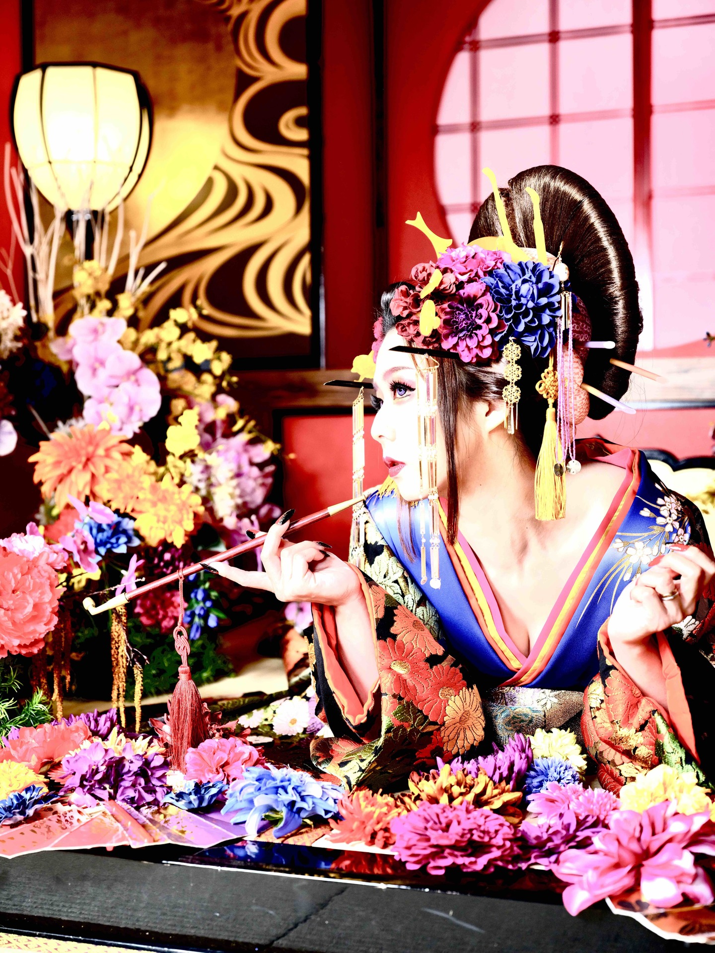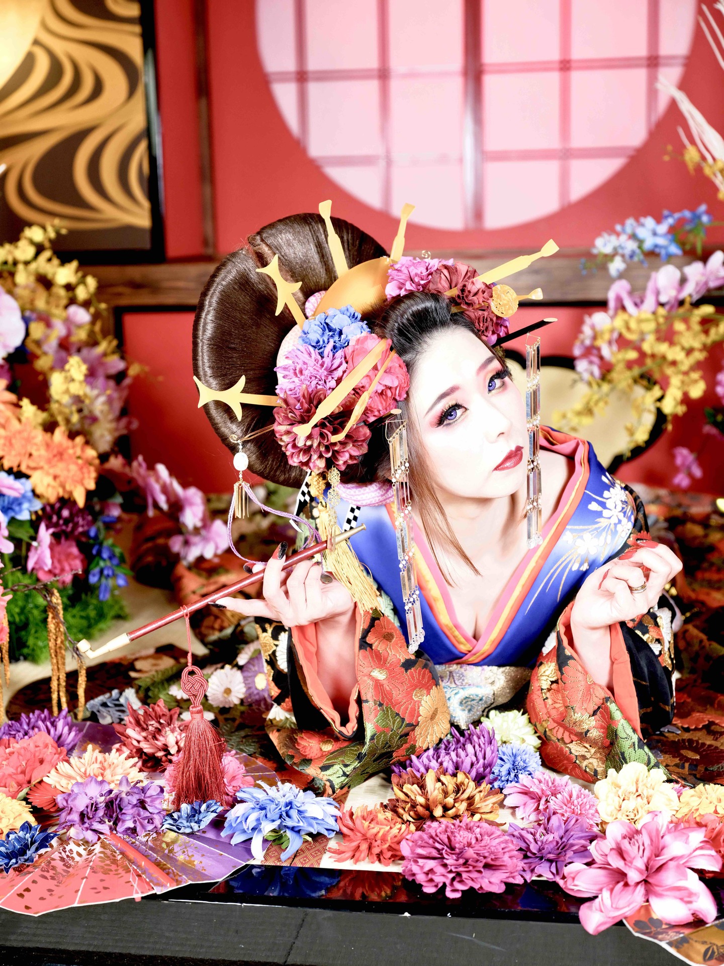 このことにインスバイアされて、今回はiBが誇るチーフ・フロントKKURUMIさんになんと花魁に扮してもらいました!