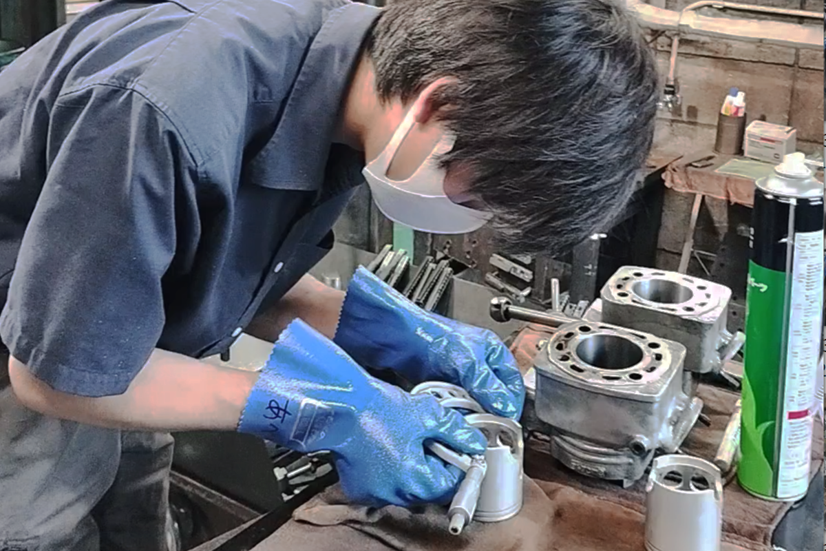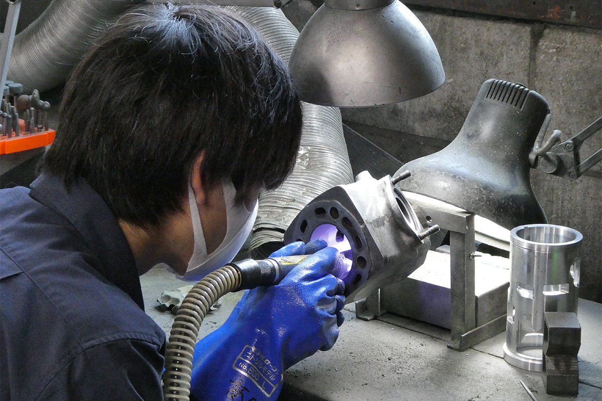過去にはホンダのレース部門「 HRC」製エンジンのポート面取りも、井上ボーリングとして担当していた事があるそうで、 HRCが認めた精度の高さも自慢のポイント。