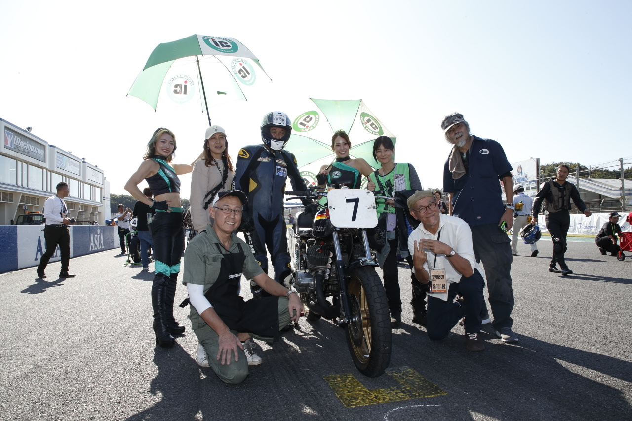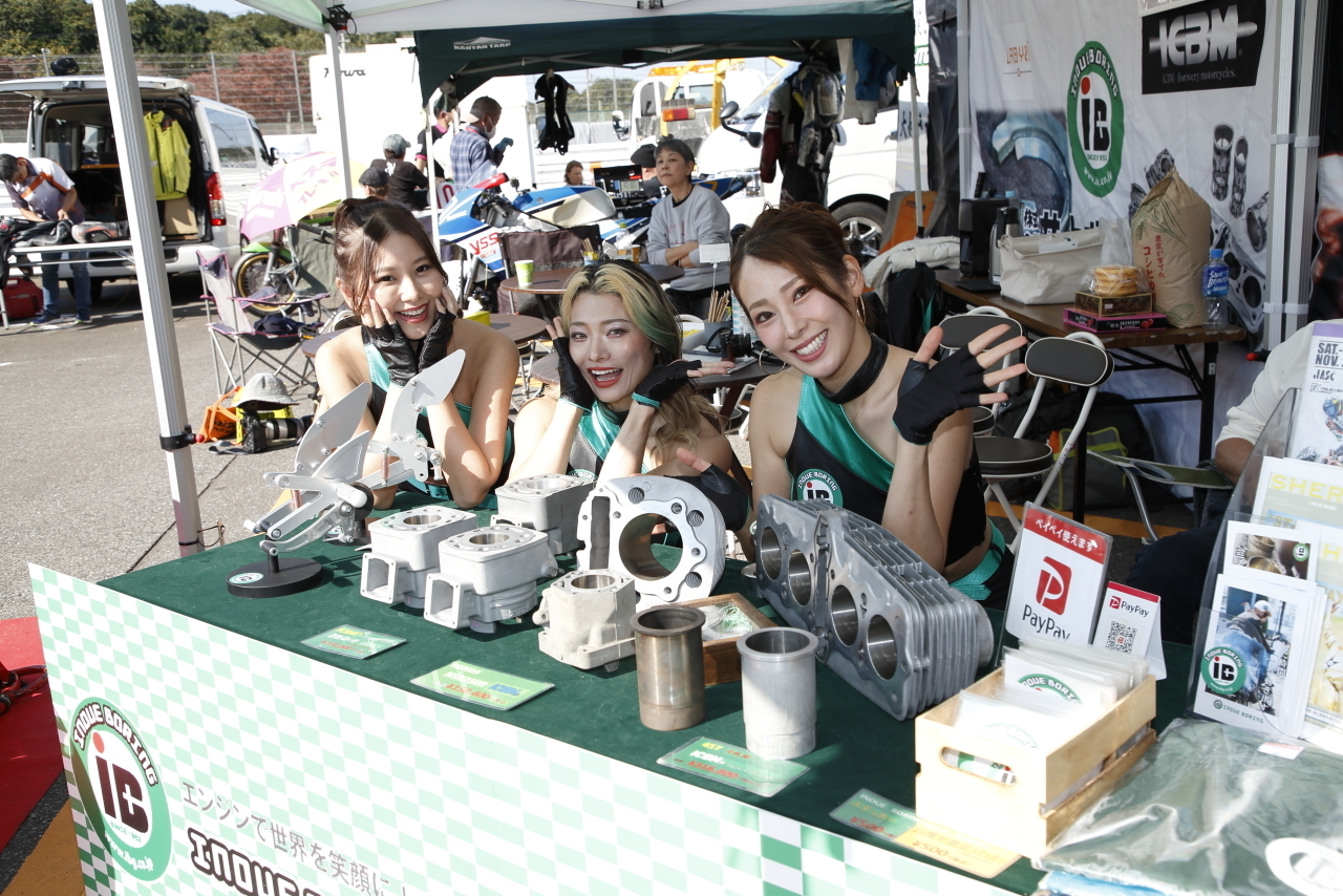 筑波に行ってみると、サーキットを走っているのはGENさんのRZ-Rをはじめとして旧いバイクに乗った、iBのお客様のようなライダーばかり、これは内燃機屋として僕達がこのレースを応援をしなくちゃ!と思ってその年の秋からライダーブースを兼ねて出展するようになったんです。