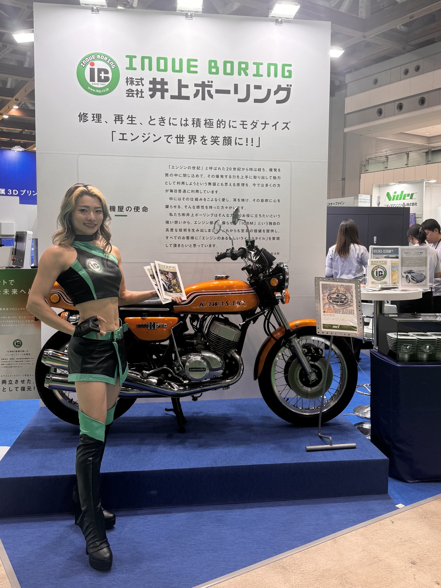 iB Lady 多井子さんとH2車両が一緒の展示はお堅い工作機械の展示場の中では異彩を放ち、多くの観客の方に大好評をいただいたことは言うまでもありません。