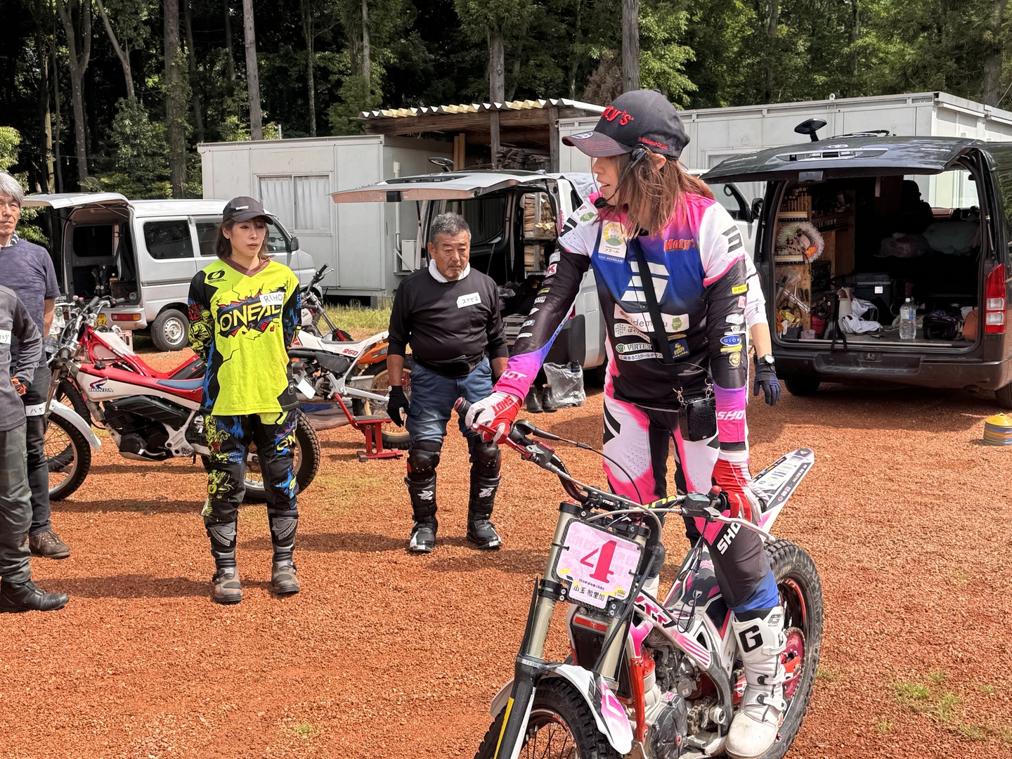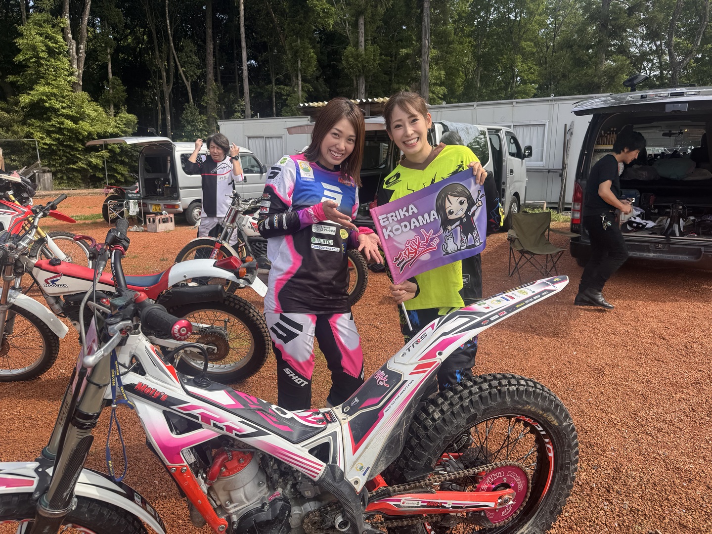 後援しているのはBG誌。BG誌は小型のバイクの楽しみ方を提案するとともに、絵里加さんを応援し、またトライアルの普及にも一役買おうしているようです。素晴らしい。読者とこのような接点を持って雑誌を出版していくポリシーある姿勢は本当に尊敬できます。