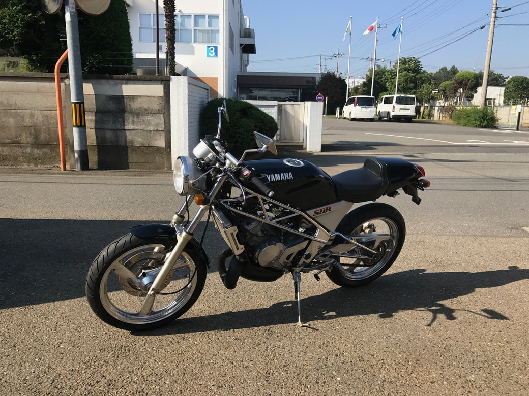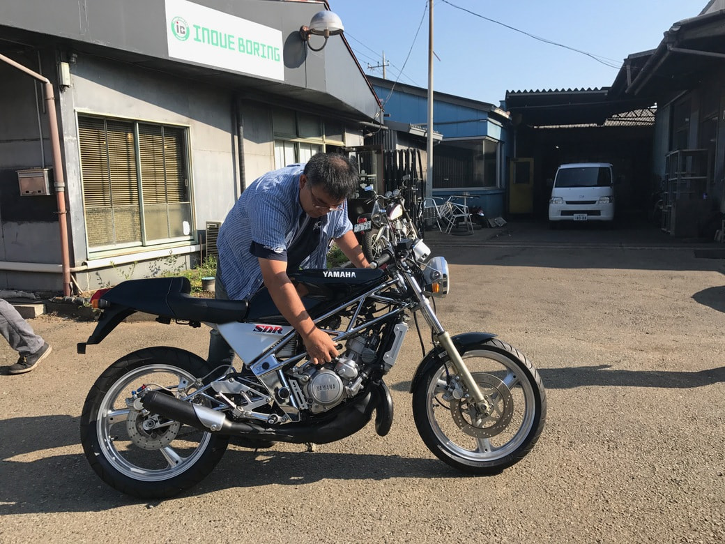 SDRは軽くてパワフルで愉しいバイクですよね。前から一度乗ってみたいと思っていました。井上がレースで使っているBULTACO Metrallaとも相通ずるところがある、2スト単気筒のライトウェイトスポーツです。