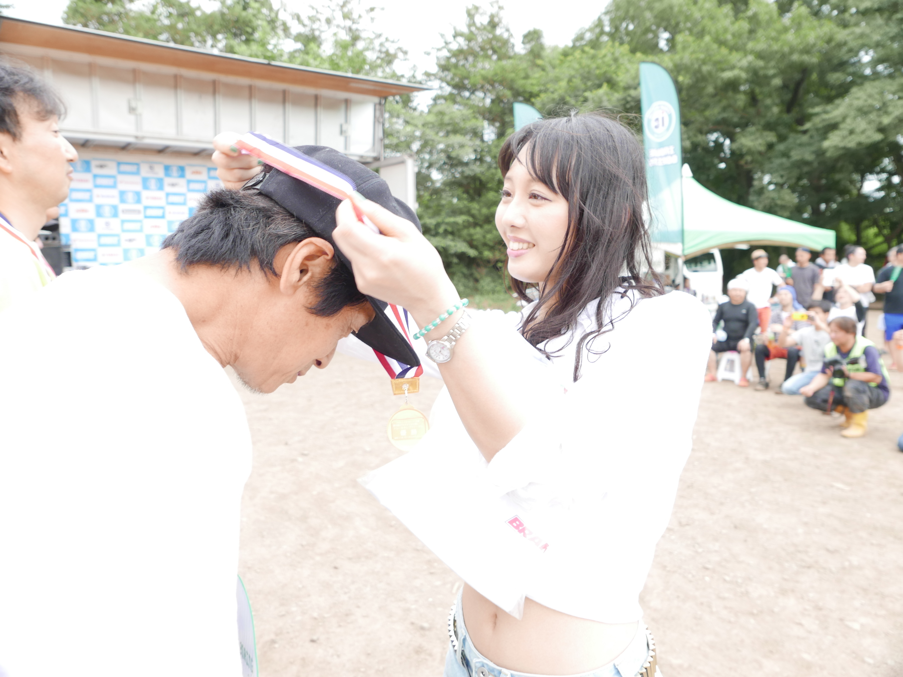 iB Ladyがメダルを入賞者のみなさんにかけてあげます。